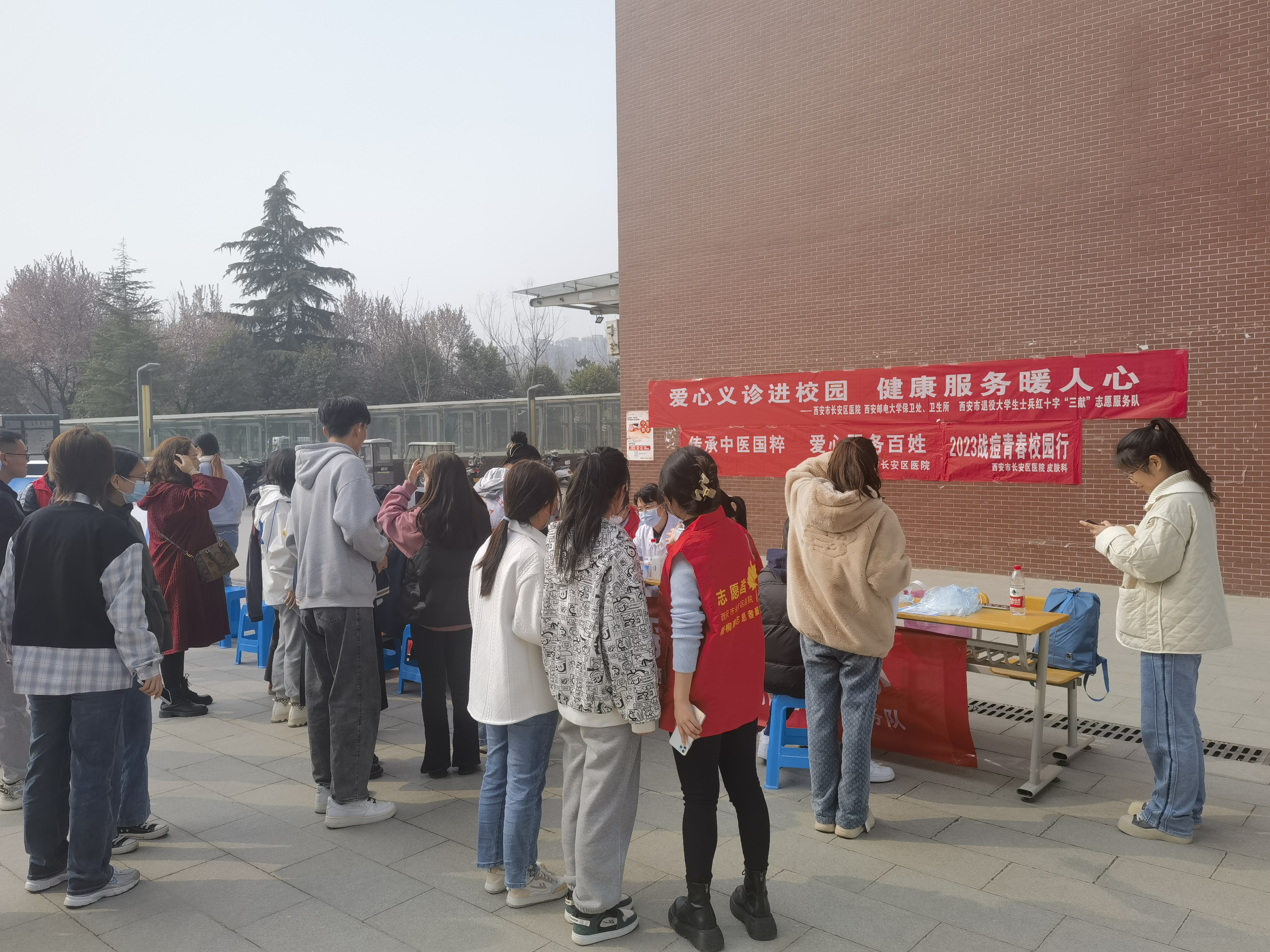 为深入学习贯彻落实党的二十大精神, 3月20日下午,长安区医院梧桐雨志愿服务队联合西安邮电大学保卫处、卫生所以及西安市退役大学生士兵红十字“三献”志愿服务队在西安邮电大学长安校区开展“学雷锋 志愿行”爱心义诊活动。